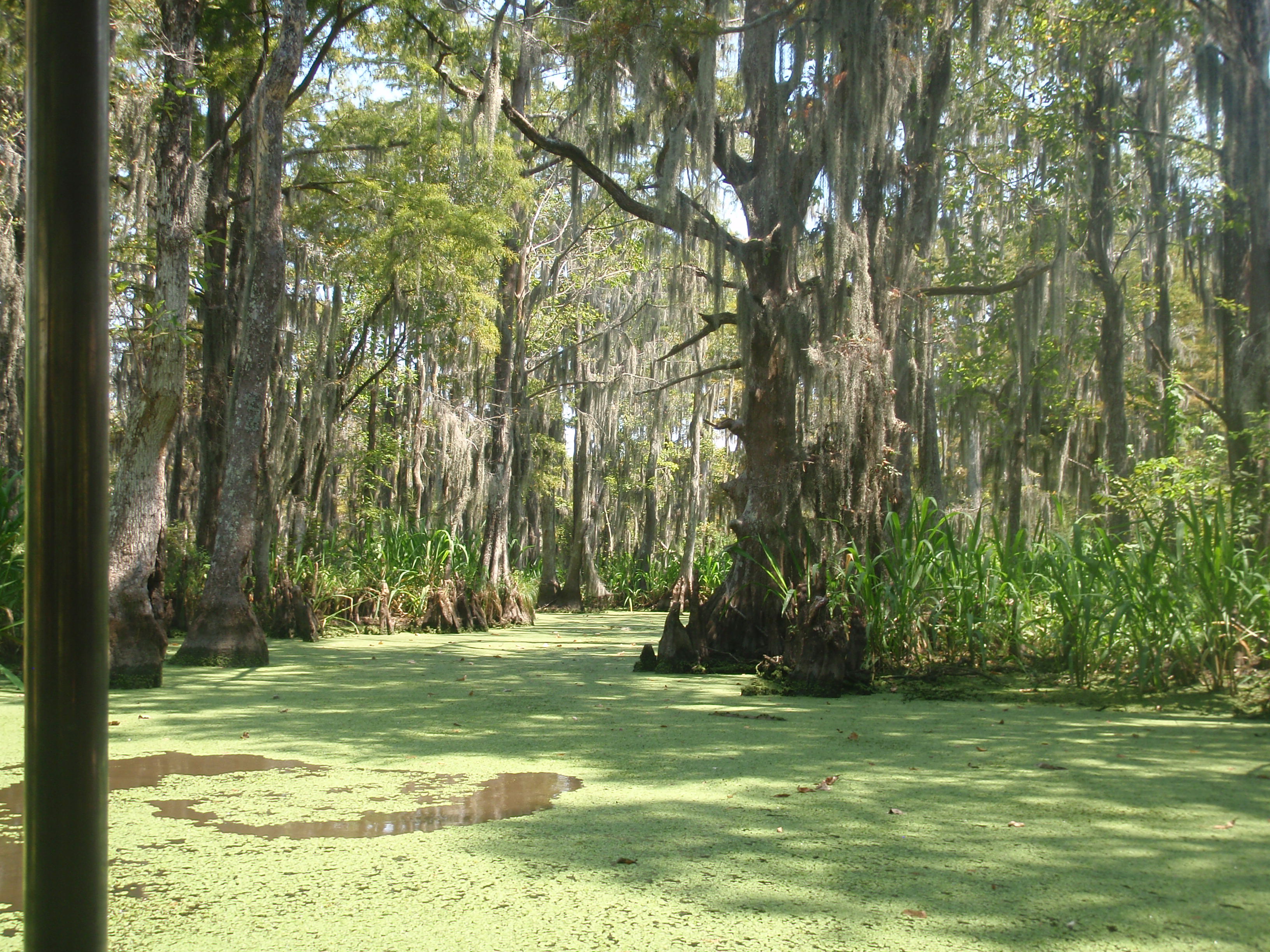 The swamp, only a few miles from the bustling party town of New Orleans, is peaceful.