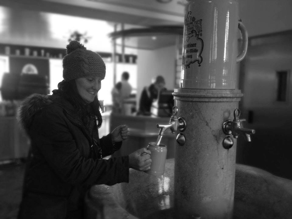 Hammering the spike further into the barrel, he starts to decant the beer into large heavy stone mugs. The froth gushes over the rim as he slides it across the counter. Local Austrians bustle through collecting their steins and washing them under the golden taps of the huge fountain in the middle of the room, before getting them filled to the brim with the cold, golden liquid. This is the Augustiner Bräu Kloster Mülln, a brewery started by monks in 1621.