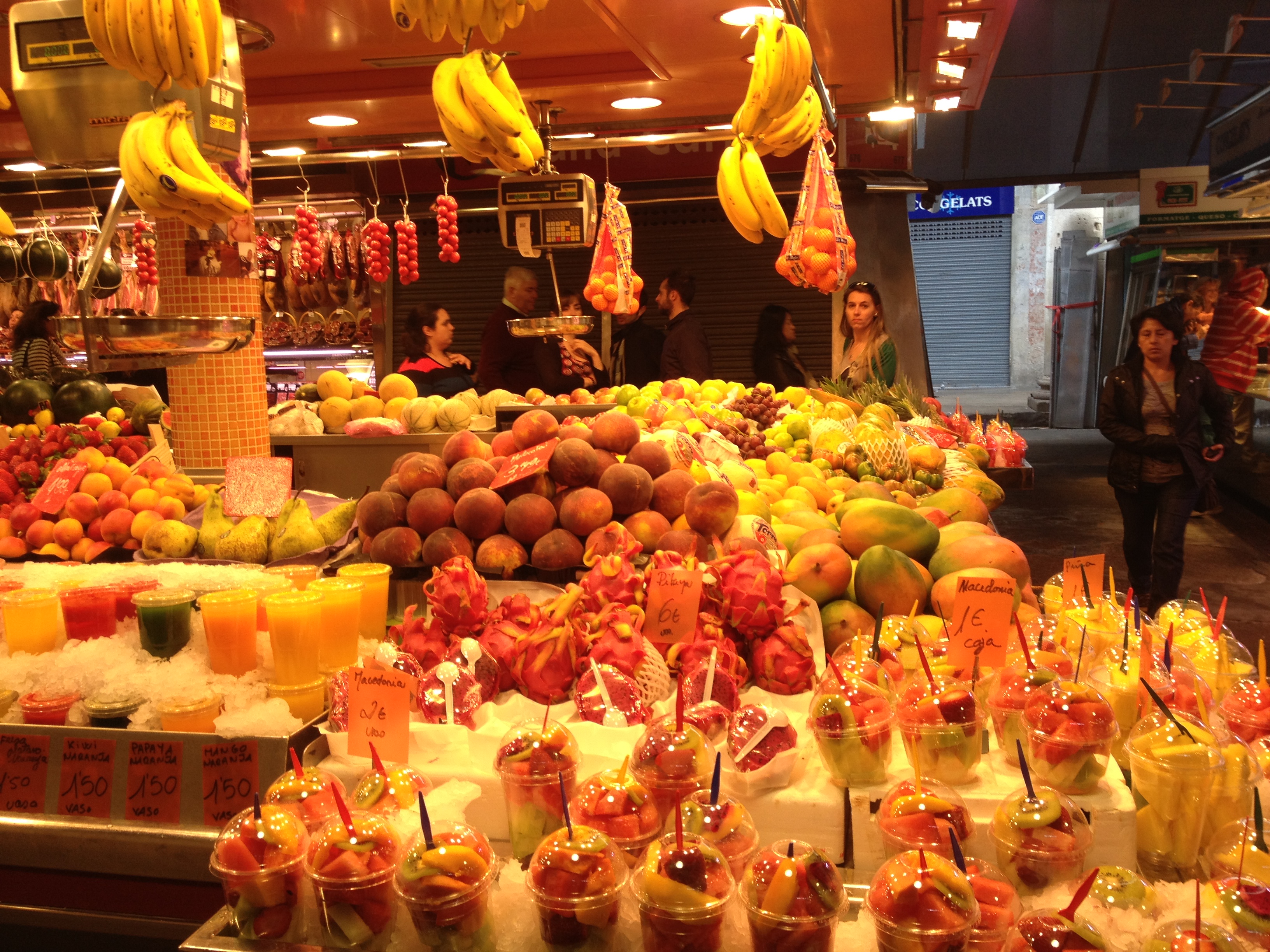 Mercat de Sant Josep de la Boqueria– A huge food market located off Las Rambla, where you can find everything from fresh fruit to cows tongues! This busy bustling market is a great place to grab a fruit smoothy, or a snack from one of the bakery stalls to keep you going until dinner! If you are squeamish stay away from the meat stalls – I turned a corner while looking for my friend and came face to face with a skinned animal head! The market is closed on a Sunday, so make sure you add it to your Saturday to do list!